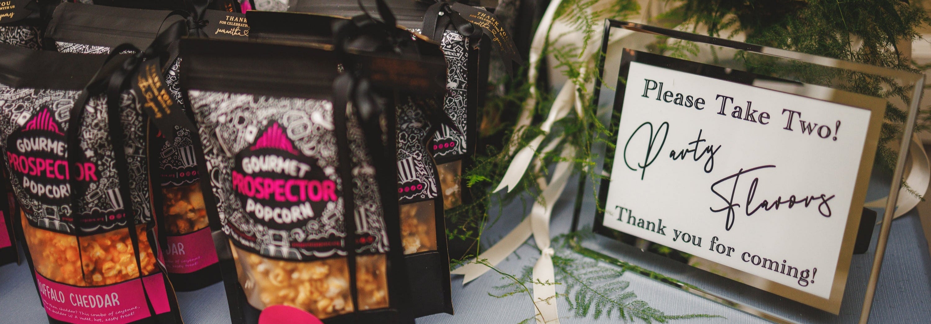 Elevate your next company event with an irresistible touch. Introduce Prospector Popcorn's gourmet delights to your gathering, offering a distinctive twist to any occasion. Our gourmet treats are perfect as party favors, table adornments, or additions to gift bags.