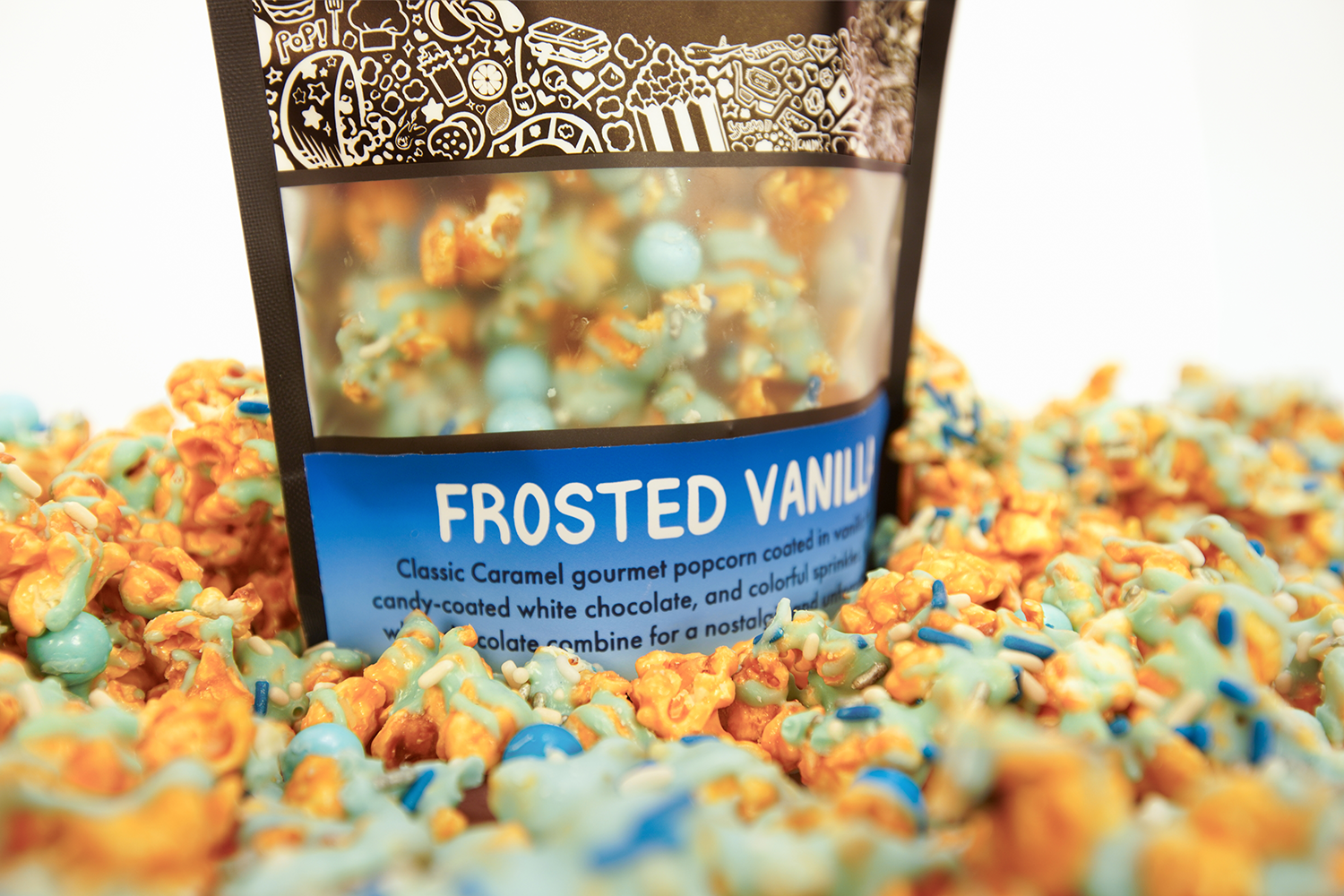 - 1 bag of Frosted Vanilla – A perfect harmony of buttery caramel, creamy white chocolate, and a hint of vanilla for a delectable sweet-salty experience.