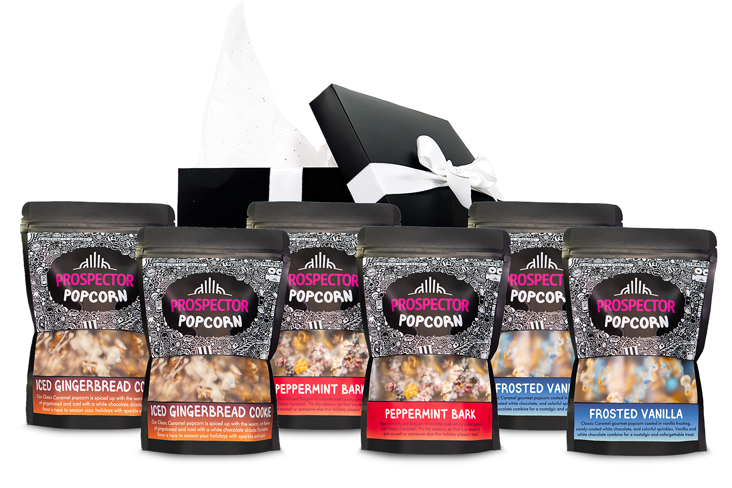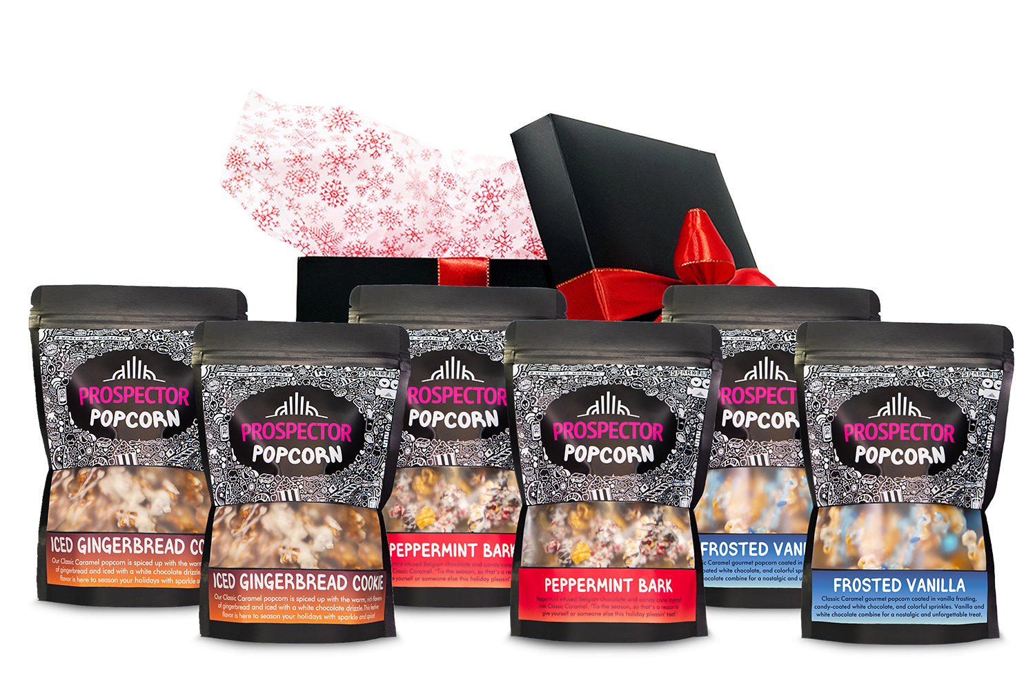 This Holiday Gift Box is a delightful way to celebrate the season, presenting an irresistible selection of our finest festive flavors in an elegantly black box.