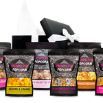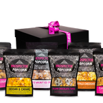 This Gift Box offers a handcrafted collection of gourmet popcorn that fits every celebration, presented in an elegant black box that’s ready to give or send.